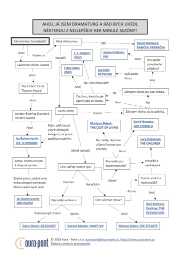 Drama i komedie, well-made-play i experiment, divadlo pro dospělé i pro děti. V této hře na dramaturga dojdete pomocí nějkolika jednoduchých otázek přesně k té hře, po které už dlouho pátráte.